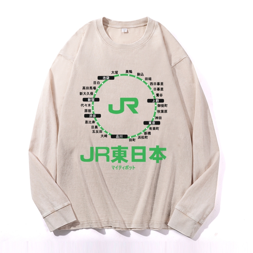 Circle Of Life Vintage Cotton Wash Crewneck Long-Sleeve T-Shirt