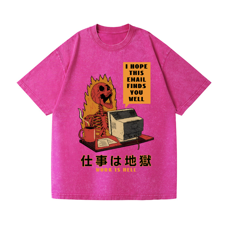 Skull Work Is Hell Vintage Wash Japanese Design T-Shirt
