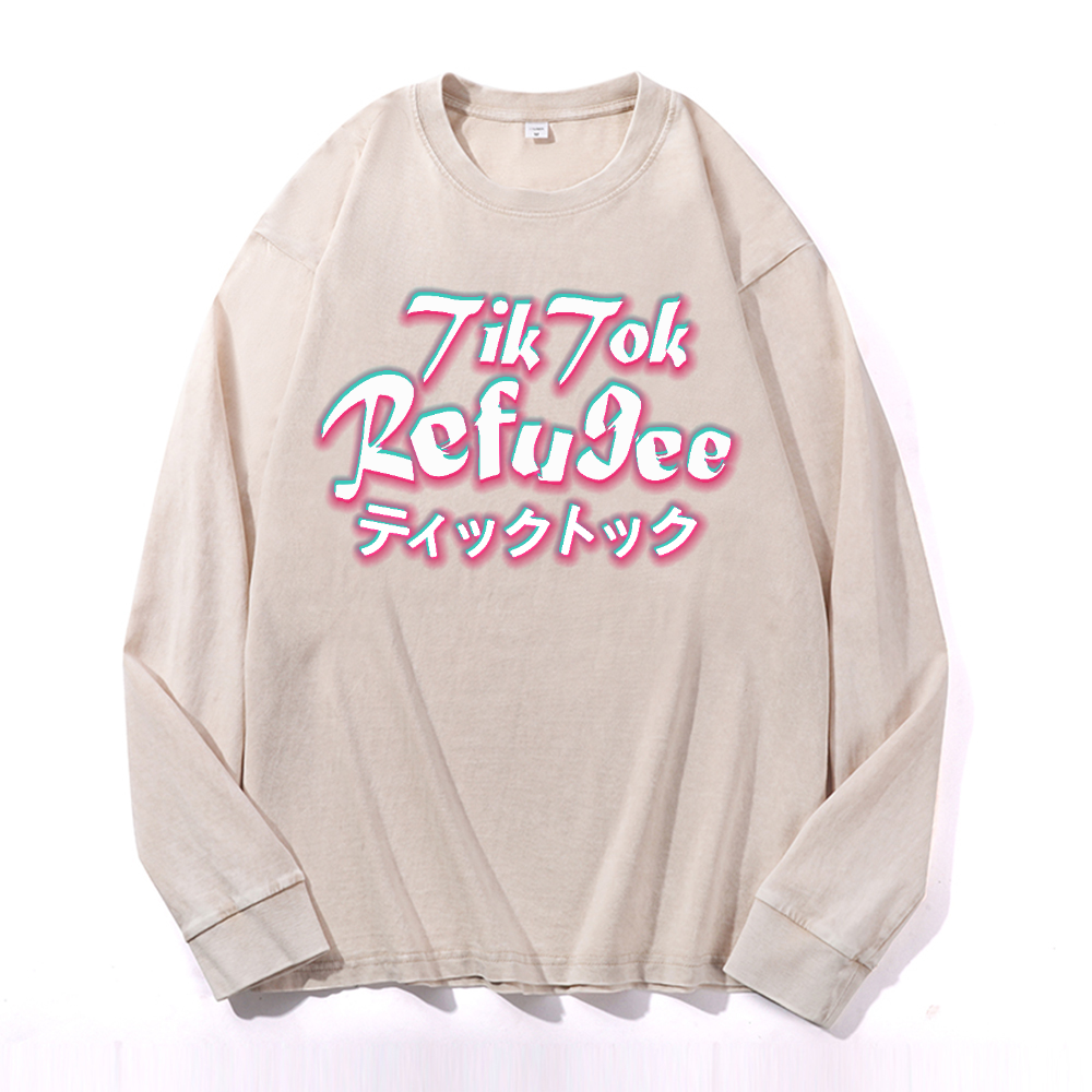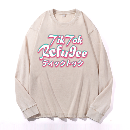 Tik Tok Refugee Vintage Cotton Wash Crewneck Long-Sleeve T-Shirt