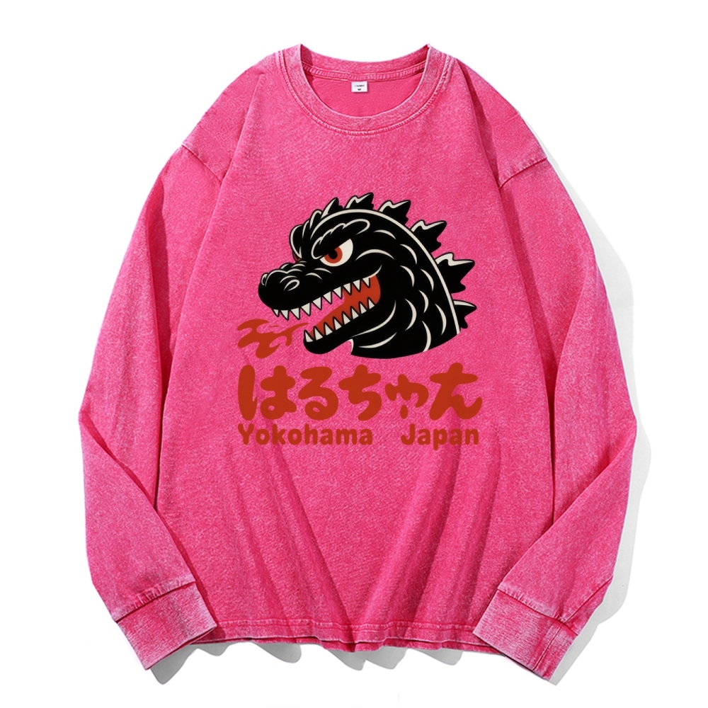 Yokohama Kaiju Vintage Cotton Wash Crewneck Long-Sleeve T-Shirt
