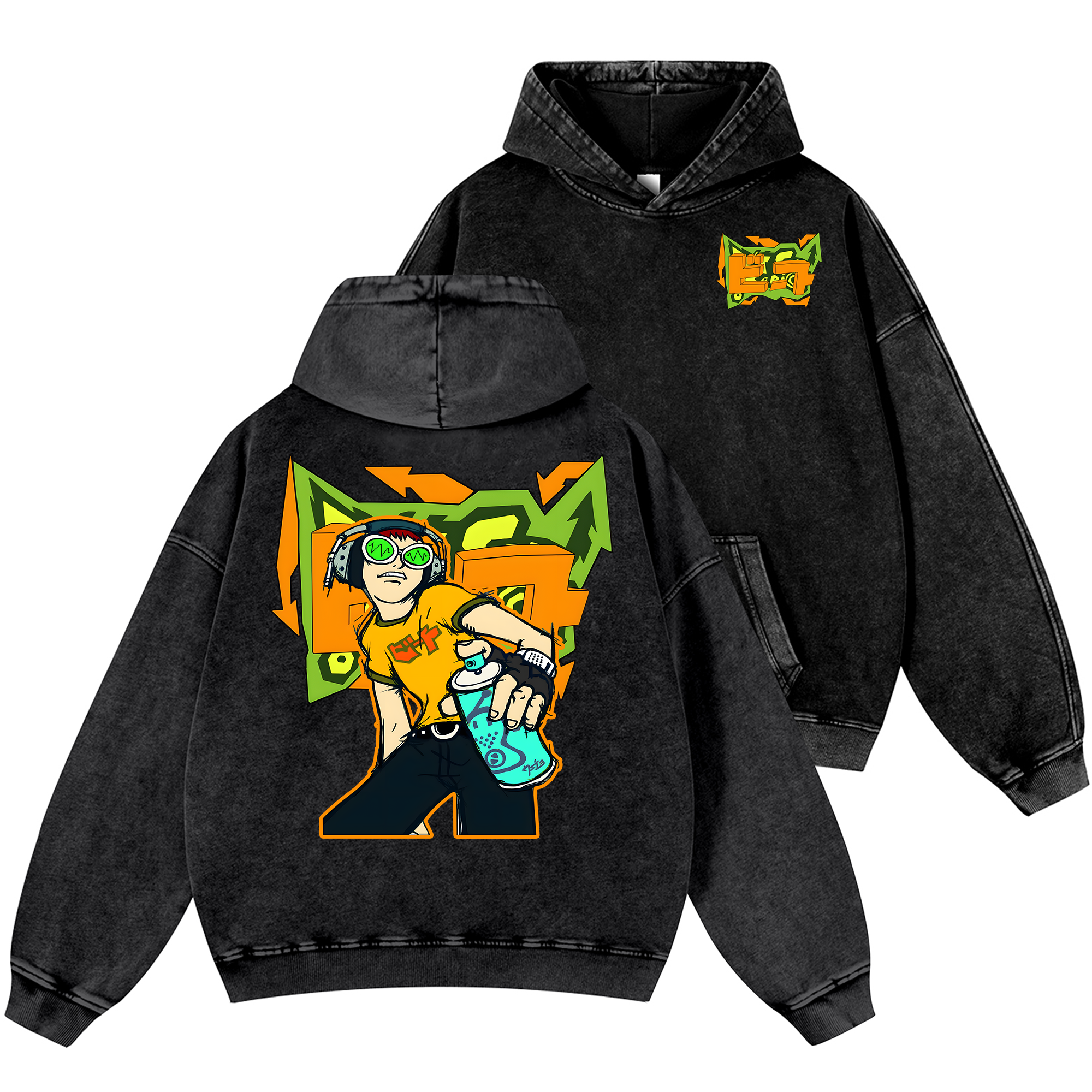 Jet Set Radio Vintage Washed Cotton Back Art Hoodie