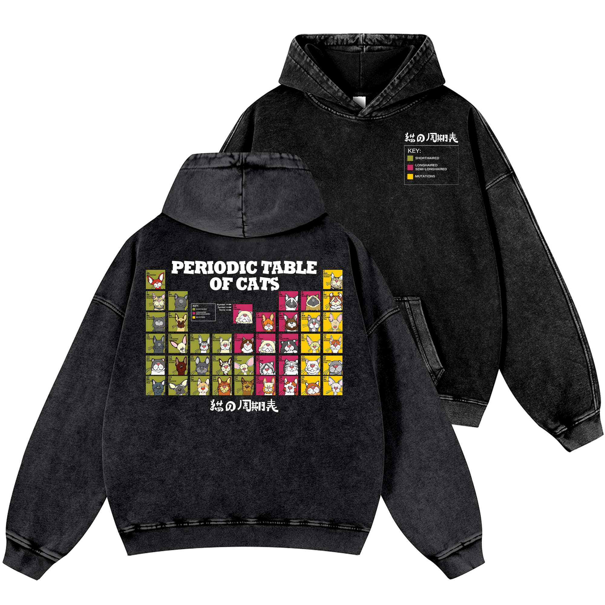 Periodic Table of Cats Vintage Washed Cotton Back Art Hoodie