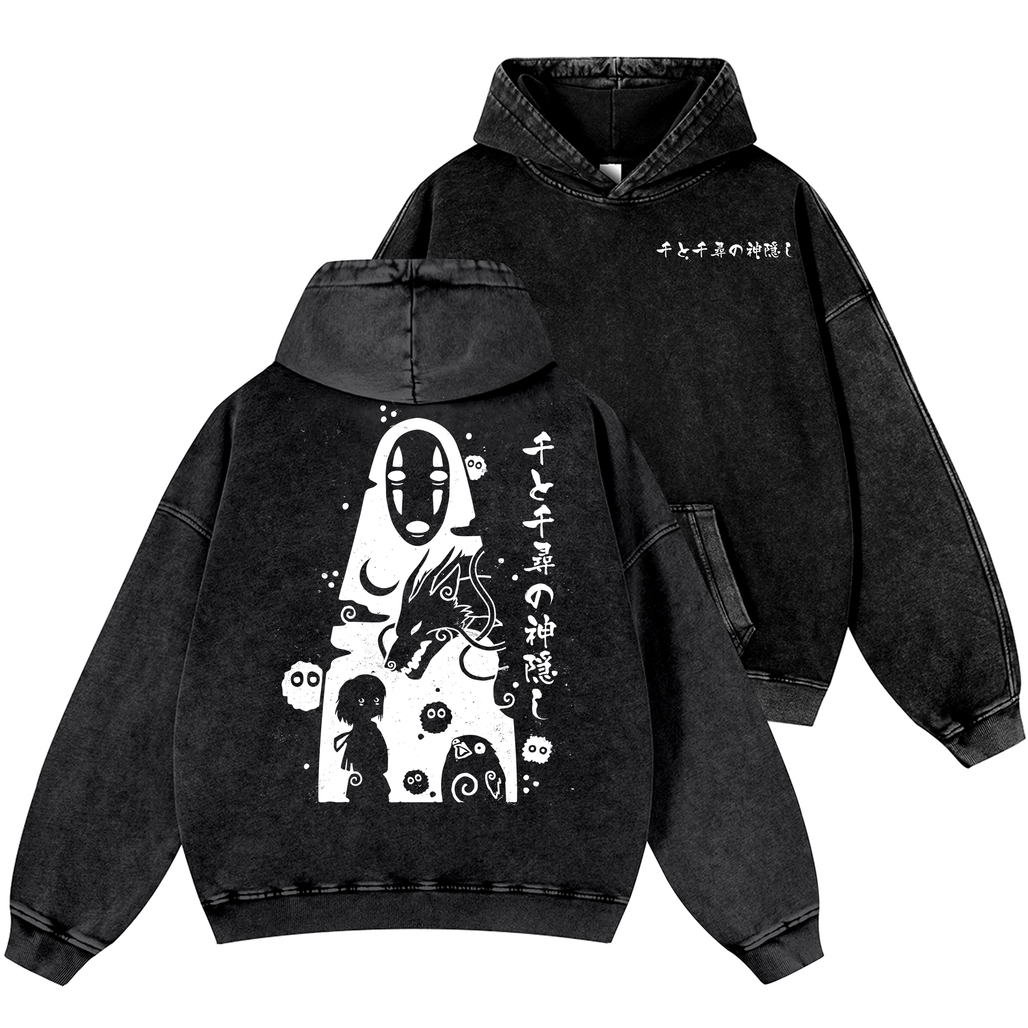 Ghibli No Face Kaonashi Vintage Washed Cotton Back Art Hoodie