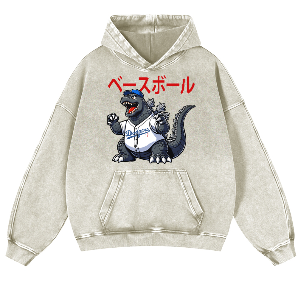 Dodgers Kaiju 17 Baseball Vintage Washed Thick Cotton Hoodie