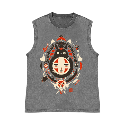 Ghibli Totoro No Face Kaonashi Pure Cotton Wash-Dyed Sleeveless Tank Top