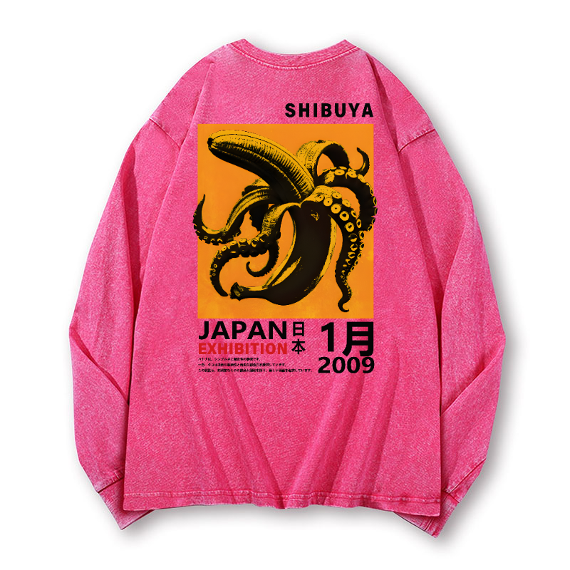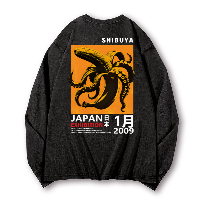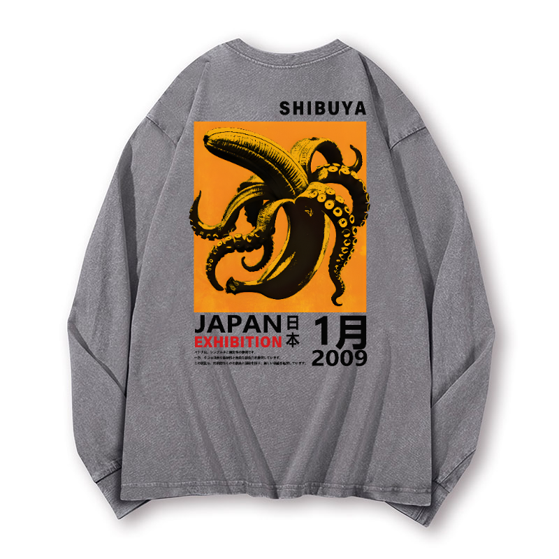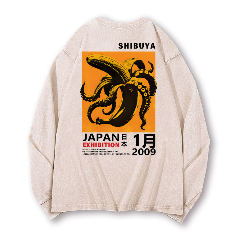 Shibuya Banana Octopus Vintage Washed Cotton Back Art Long-sleeve T-shirt