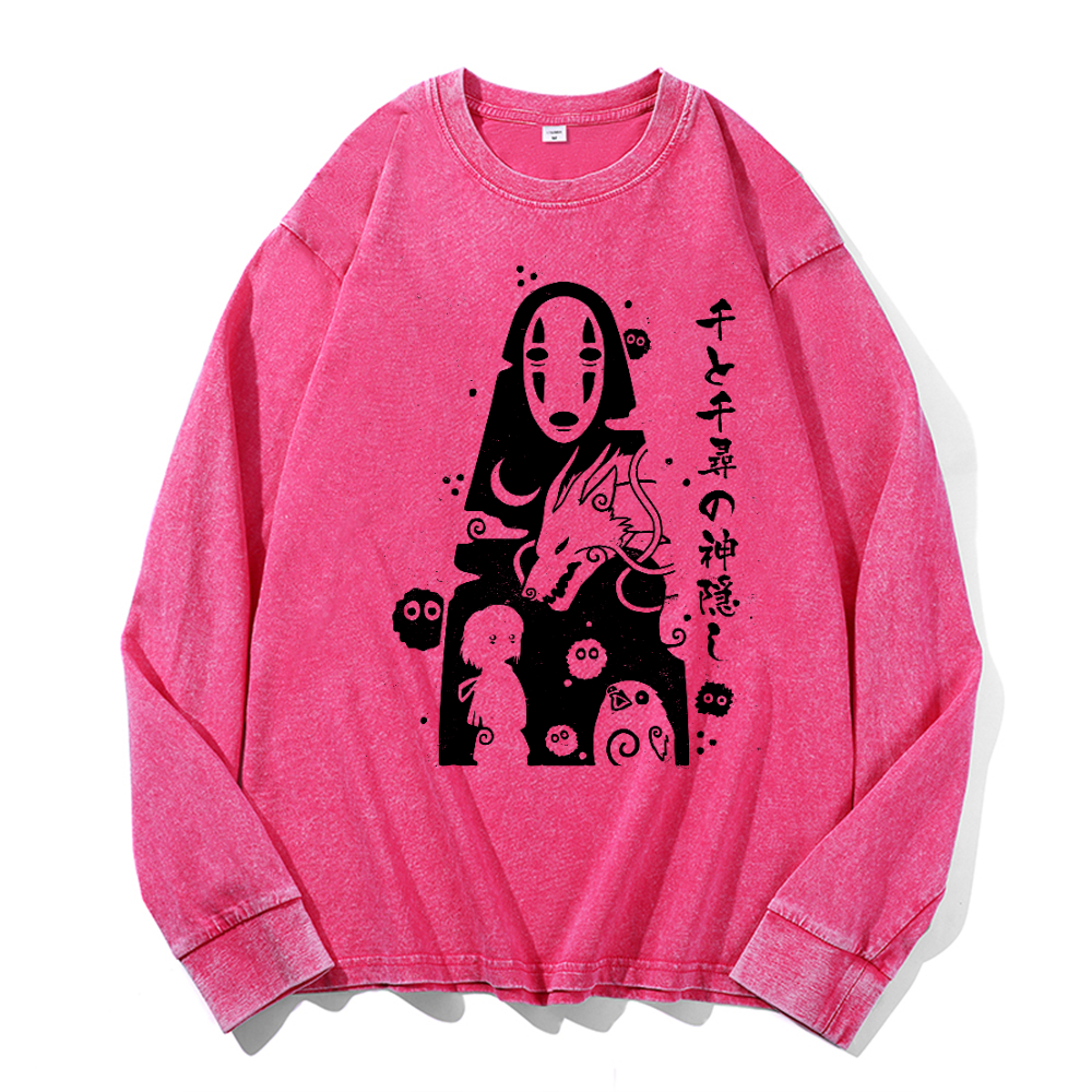 Ghibli No Face Kaonashi Vintage Cotton Wash Long-sleeve T-shirt