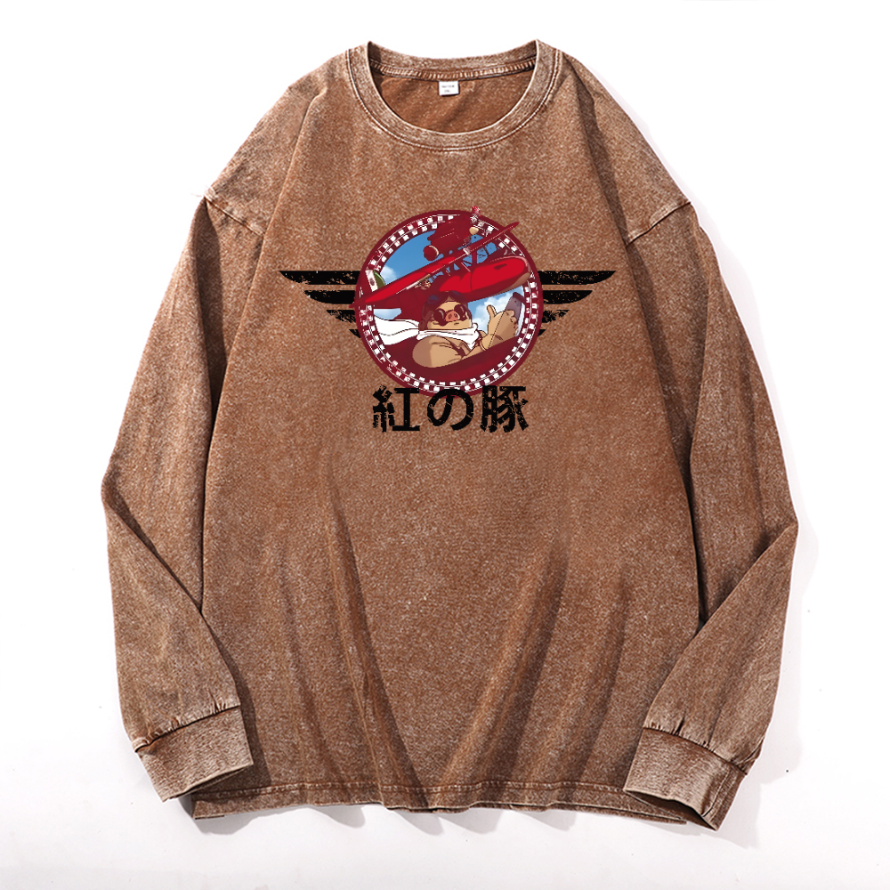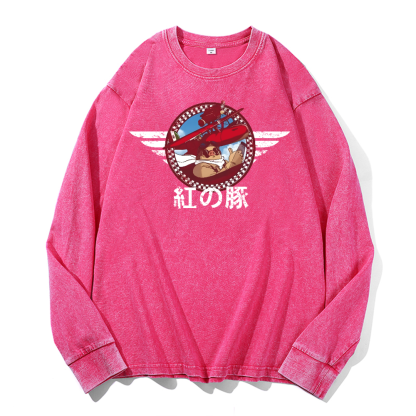 Ghibli Porco Rosso Vintage Cotton Wash Long-sleeve T-shirt