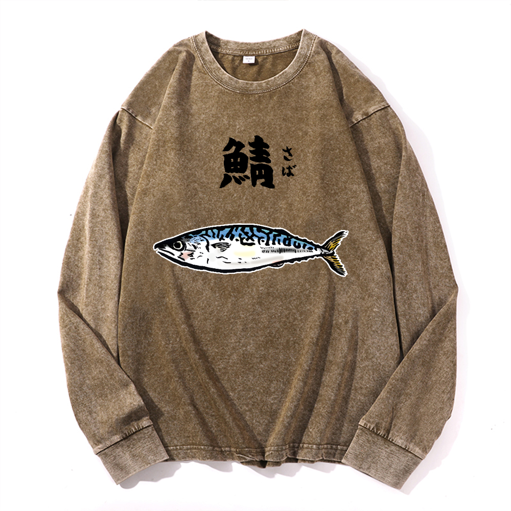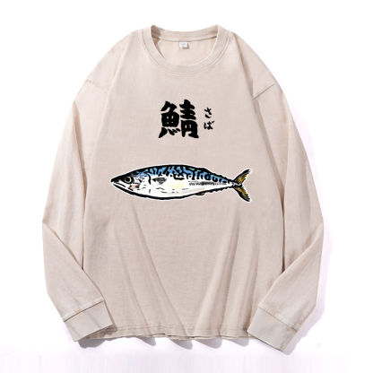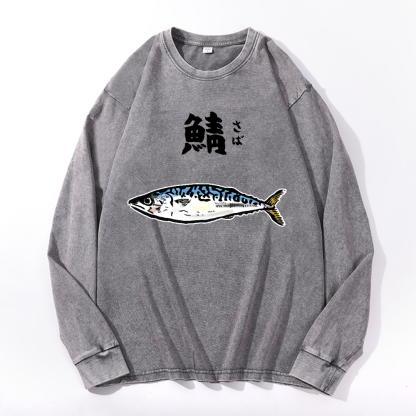 Mackerel Vintage Cotton Wash Crewneck Long-Sleeve T-Shirt