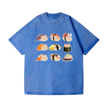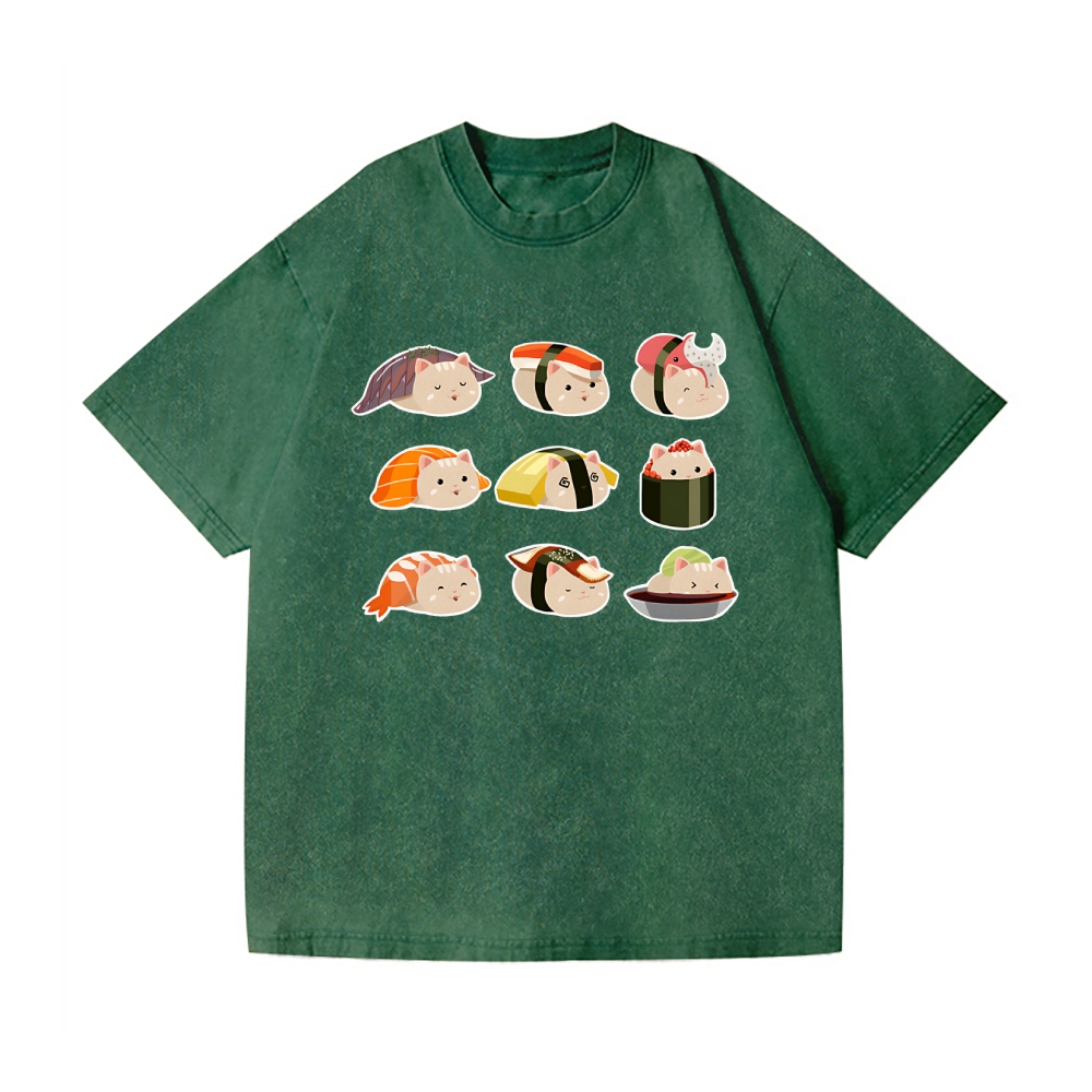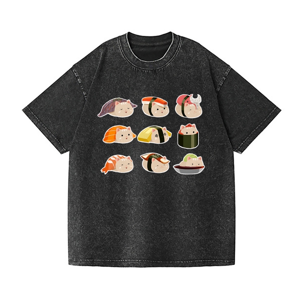 Sushi Cat Vintage Wash Japanese Design T-Shirt