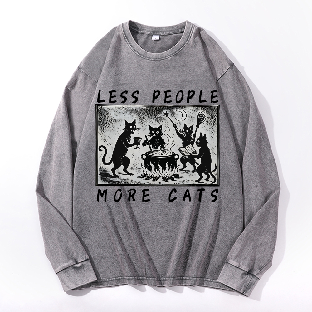 Tiger And Cat Sacrificial Ceremony Vintage Cotton Wash Crewneck Long-Sleeve T-Shirt