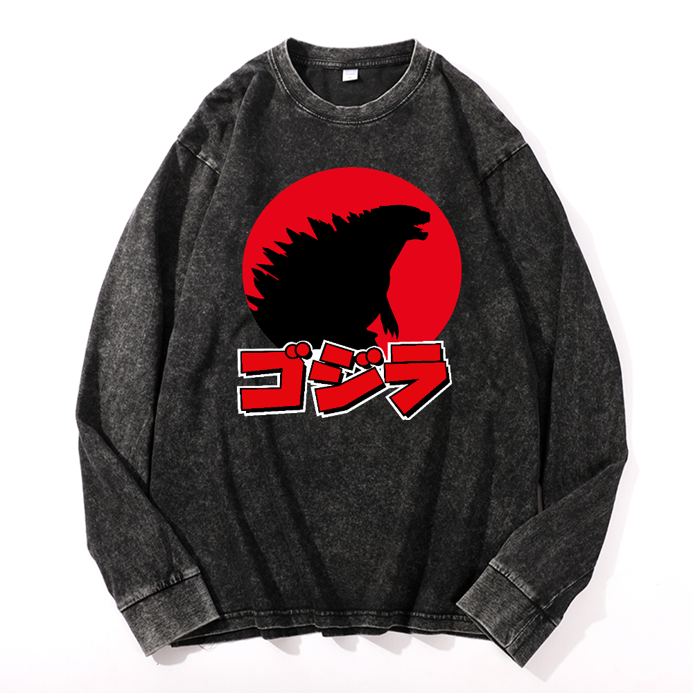 Kaiju Vintage Cotton Wash Crewneck Long-Sleeve T-Shirt