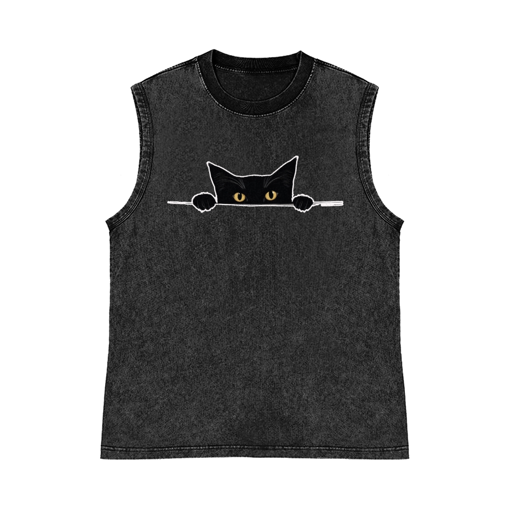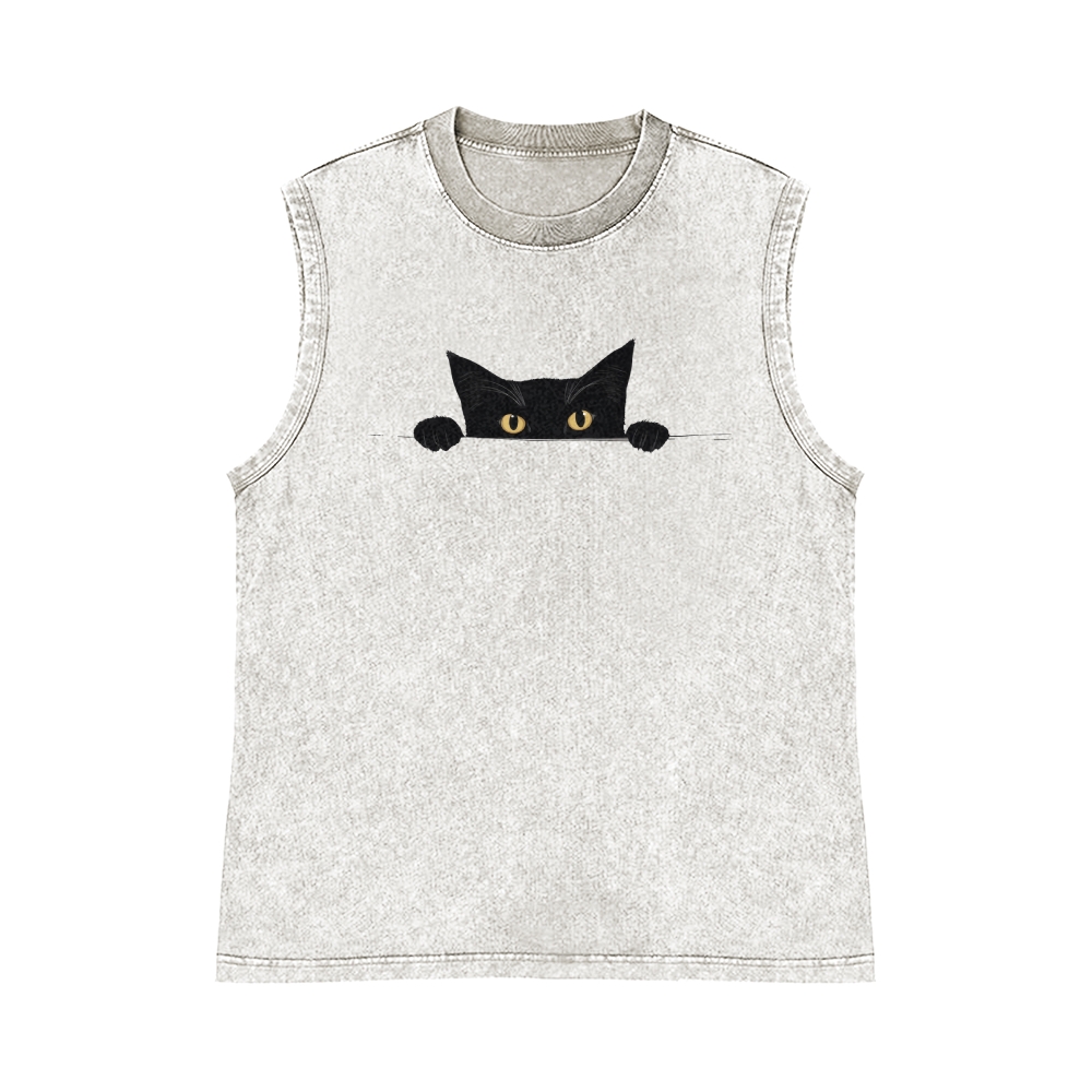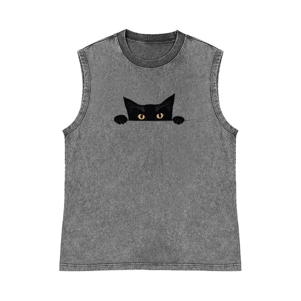 Black Cat Pure Cotton Wash-Dyed Sleeveless Tank Top