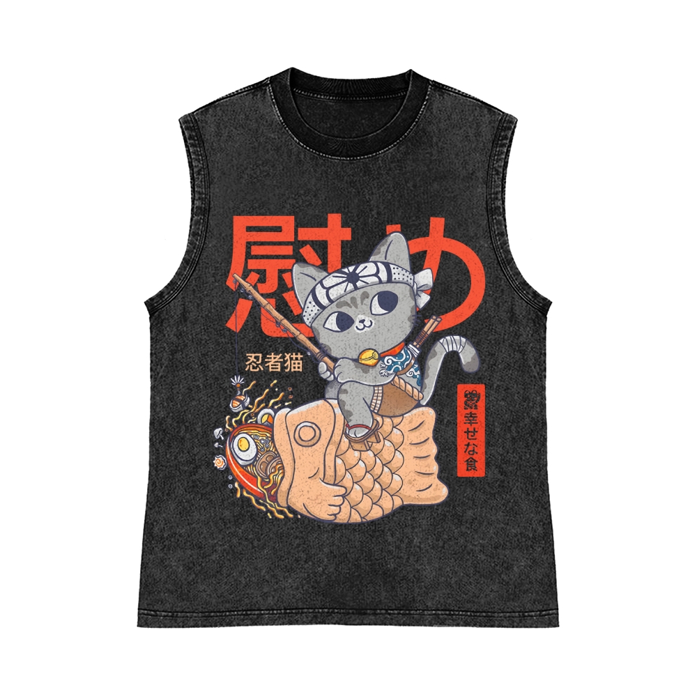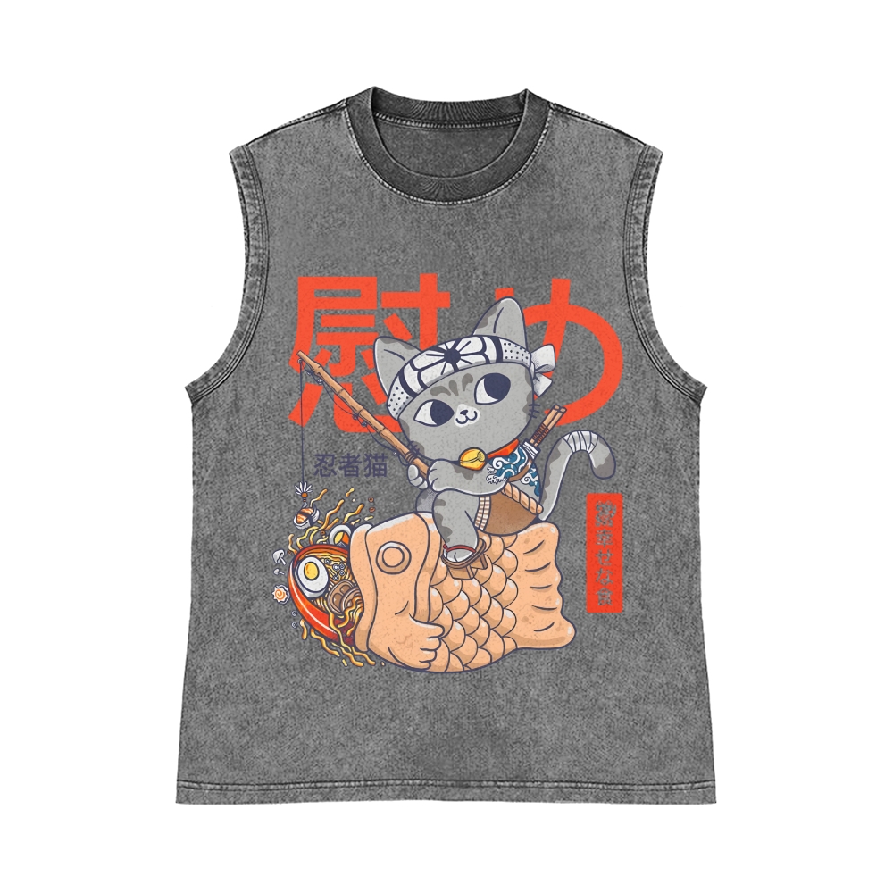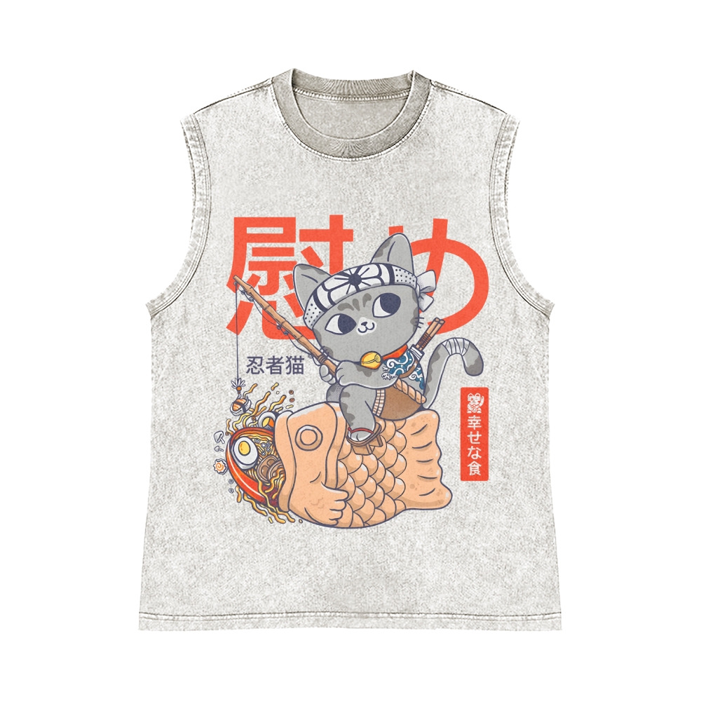 Ninja Cat Pure Cotton Wash-Dyed Sleeveless Tank Top