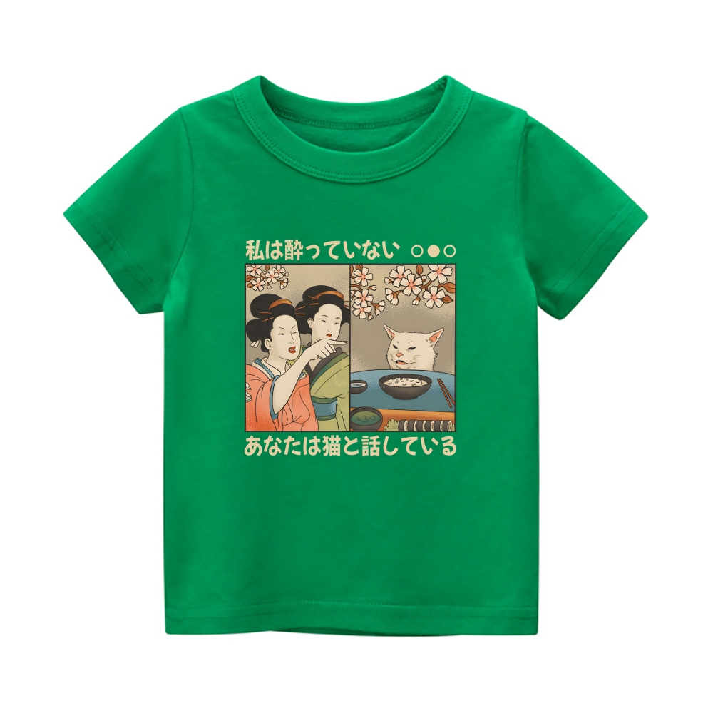 Women Yelling Cat Vintage Kids Cotton T-shirt